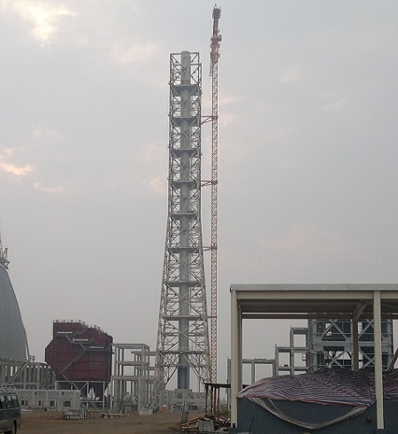 3, 当钢塔架与排烟筒釆用整体吊装时应对塔架进行吊装验算。